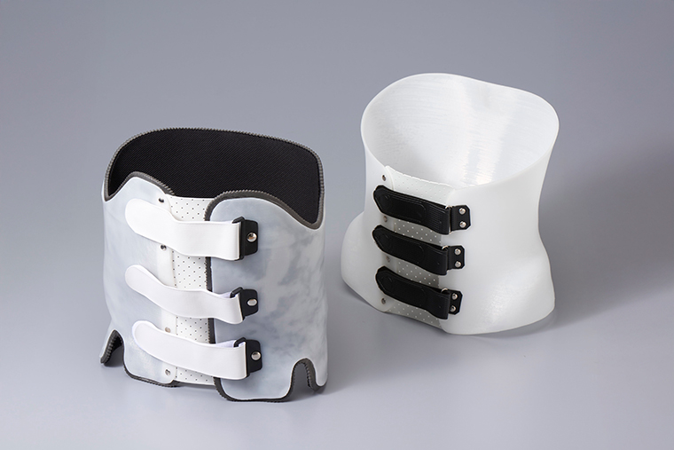 TPO はオレフィン系エラストマー樹脂。肌に優しくしなやかさが特徴。層間強度が高くはがれにくいので体幹装具の造形に適します。汚れても簡単に拭き取れるので清潔性を保ちやすく、PLA や ABS より吸湿性も低く扱い易い素材です。PPGW はグラスウール配合のポリプロピレン樹脂。軽量高強度で耐衝撃性と靭性に優れており、短下肢装具やチェックソケットの造形に向いています。