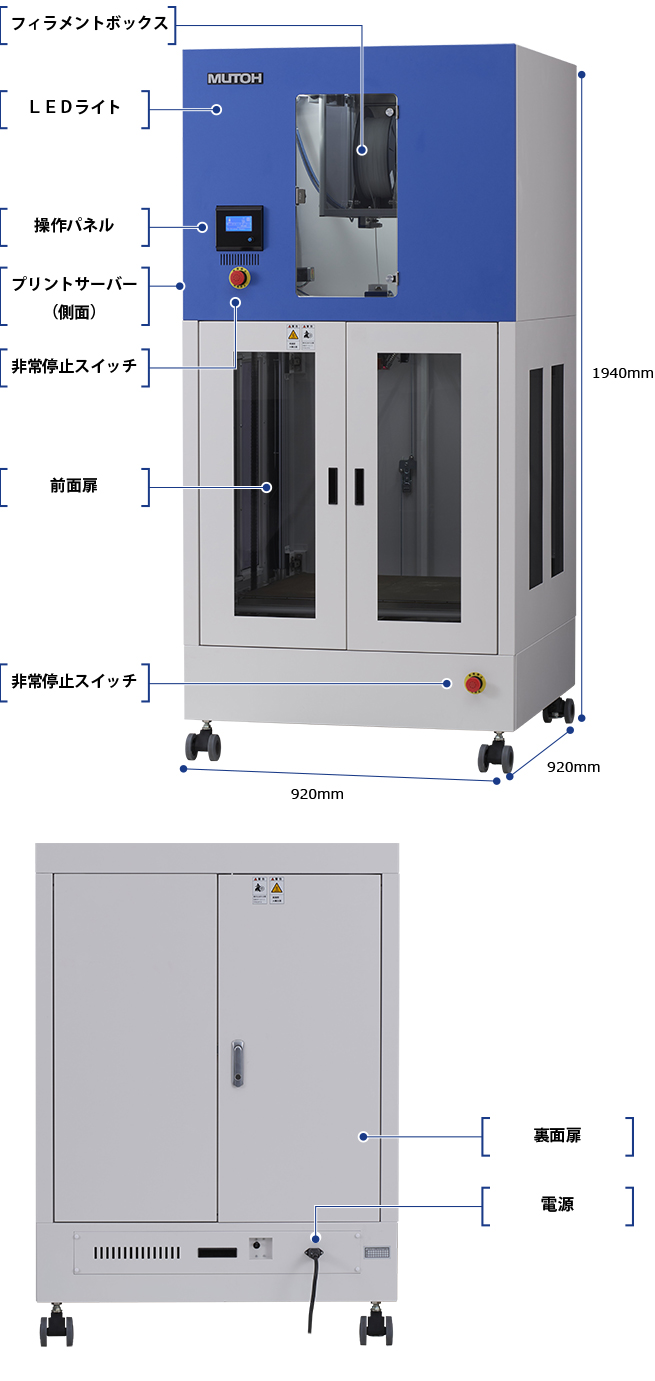 MFシリーズ最大の造形サイズ 610×610×610 mm を実現。