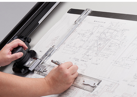 時代の流れと共に変化していく産業形態。あらゆるものづくりの礎となる設計には、よりオリジナリティ溢れる発想と柔軟な思考力、そして製造プロセスへのきめ細かな配慮が求められます。こうした力、「設計力」を育む方法として、再び注目を集めているのがドラフターです。製図用紙に向かう設計者の手に触れ、その体の一部となり、設計者の思考を真正面から受け止めてきたドラフター。CADが普及した今もなお設計者の「道具」として、その役割を確実に果たし続けます。