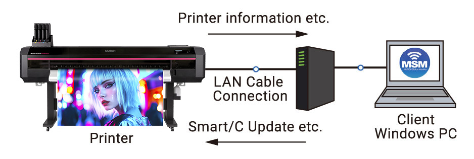 MUTOH Status Monitor is software that enables the checking of the printer operation status from a computer in real time.